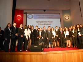 TURİZM HAFTASI ETKİNLİKLERİNE KATILDIK![]() TURİZM HAFTASI TURİZM HAFTASI NEDENİYLE FAKÜLTEMİZ TARAFINDAN ; 16 NİSAN 2013 SALI GÜNÜ GAZİ ÜNİVERSİTESİ MİMAR KEMALEDDİN SALONUNDA DÜZENLENEN "TURİZMDE YENİ EĞİLİMLER" KONULU PANELE DERNEK YÖNETİMİ OLARAK KATILDIK. ÖĞRENCİLERİN MÜZİK ZİYAFETİ İLE BAŞLAYAN PANELİN AÇILIŞ KONUŞMASINI DEKANIMIZ PROF.DR. KURBAN ÜNLÜÖNEN YAPTI. REKTÖR PROF.DR. SÜLEYMAN BÜYÜKBERBERİN PROTOKOL KONUŞMASI İLE BAŞLAYAN PANELİN BAŞKANI PROF.DR. CEVAT TOSUN'UN KAPSAMLI BİR SUNUMDAN SONRA PANELİSTLER; M.TUNÇ SOYER SEFERİHİSAR BELEDİYE BAŞKANI, METE VARDAR JOLLY TOUR YÖNETİM KURULU BAŞKANI, MESUT TAŞ STONE GROUPS YÖNETİM KURLU ÜYESİ, LEVENT MUTLU TEZ TUR GENEL MÜDÜR YARDIMCISI SUNUMLARINI YAPTILAR. TURİZM SEKTÖRÜNÜN ÜLKE KALKINMASINDAKİ ROLÜ VE ÖNEMİ, TÜRKİYENİN DÜNYADAKİ KONUMU, AKDENİZ ÇANAĞINDAKİ RAKİPLERİMİZ, TURİZM ÇEŞİTLENDİRMESİ, KALİFİYE ELEMAN YETİŞTİRİLMESİ VE İSTAHDAMININ ÖNÜNDEKİ ENGELLER, TURİZM YATIRIMLARI, ÜLKEMİZDE TURİZMİN GELİŞMESİ, RUSYADAN GELEN TURİSTLER GİBİ KONULAR RAKAMLARLA VE TECRÜBELERLE ANLATILDI... BAŞARILI GEÇEN PANELİN SONUNDA KATILIMCILARIN SORULARI CEVAPLANDI VE ÖĞLE VAKTİNDE TAMAMLANDI. GENEL BAŞKANIMIZ SELVER KORKUT VE GENEL BAŞKAN YARDIMCILARI SEBAHATTİN ADIGÜZEL VE DEVLET AKSOY İLE TEMSİL ETTİĞİMİZ KATILIMDAN DOLAYI DEKANIMIZ MEMNUNİYETİNİ VE TEŞEKKÜRLERİNİ İLETTİ. PANELİN FOTOĞRAFLARINA FOTO GALERİ BÖLÜMÜNDEN BAKABİLİRSİNİZ. TİCARET TURİZM |